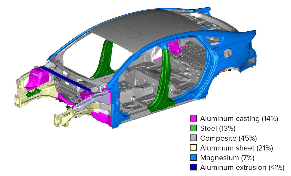 | Composites | Carbon Fiber (CFRP) | Roof panels, hoods, structural parts |