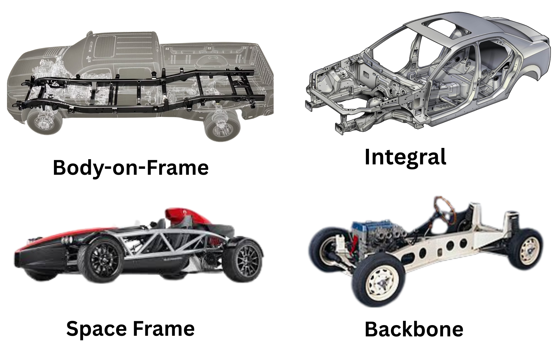 Feature & Backbone & Space Frame & Monocoque & Ladder Frame